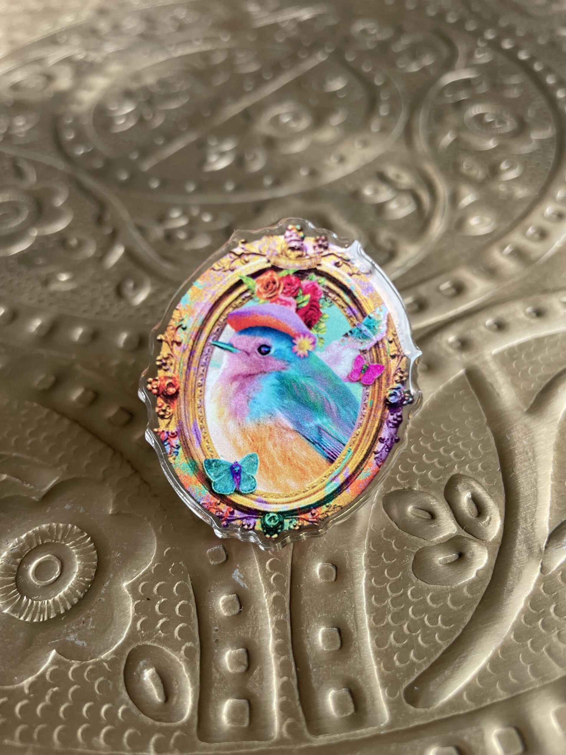 En acrylique recyclé, parce que c’est tellement mieux pour la planète. Avec un dôme en résine sublimant le visuel imprimé en recto verso.
