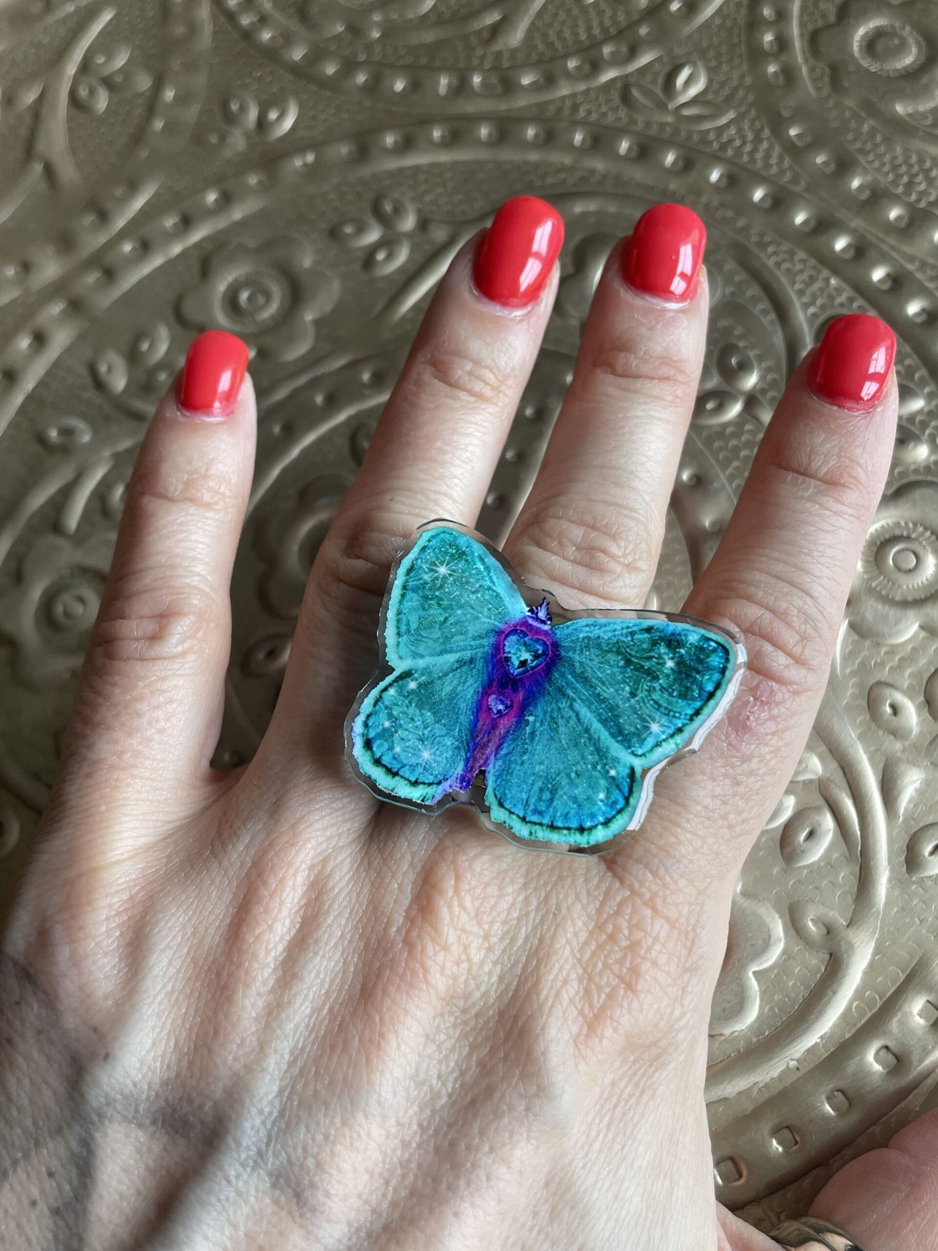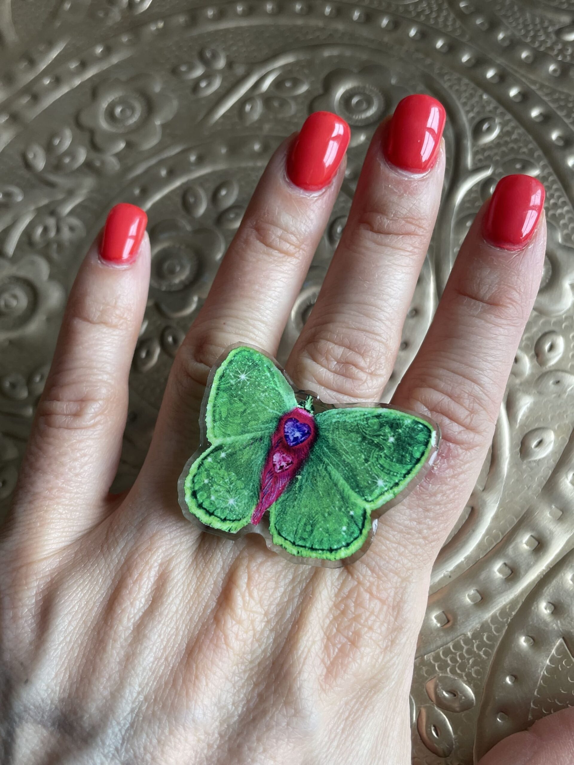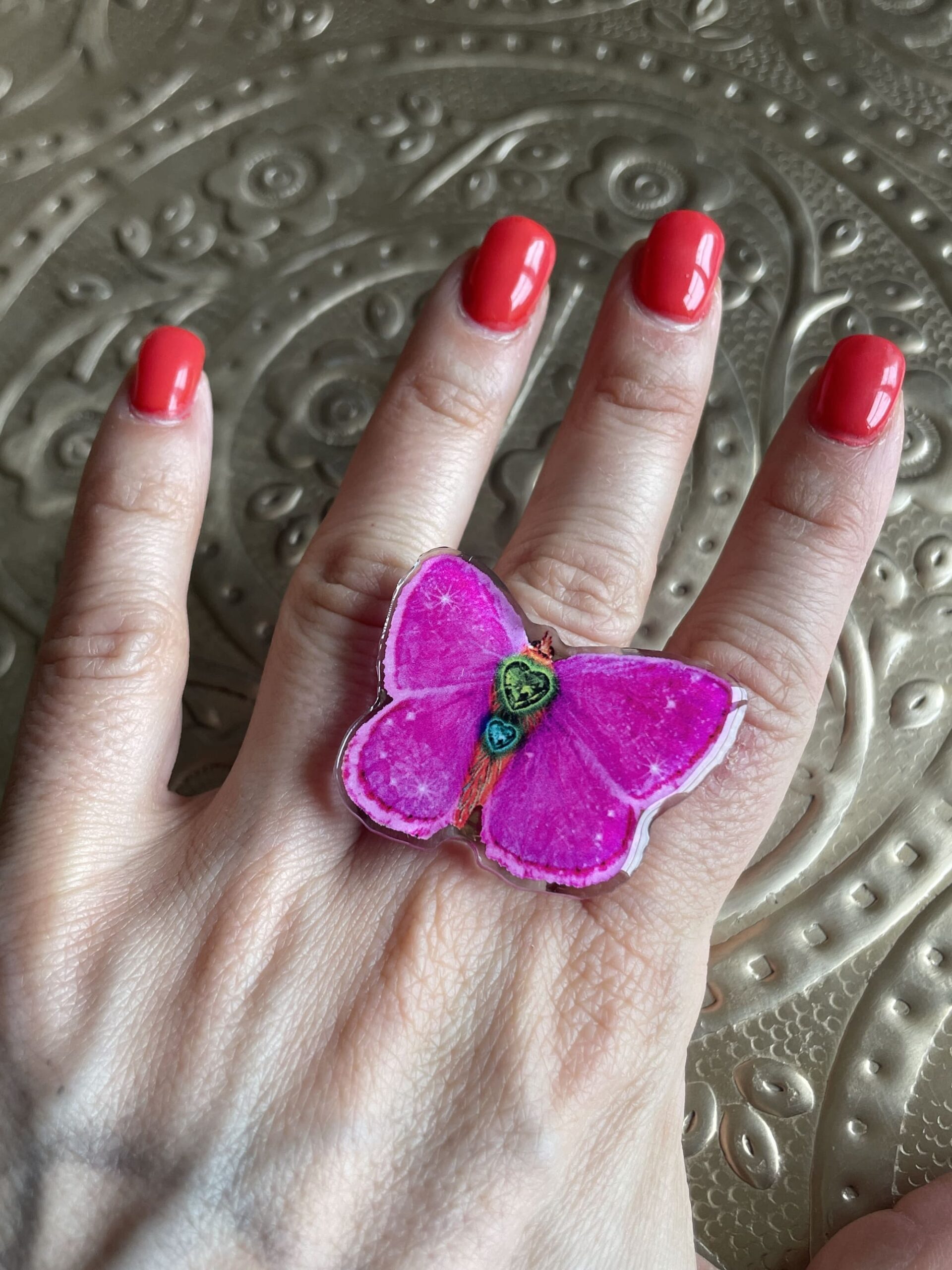 Un papillon porte-bonheur au doigt ! on adore !