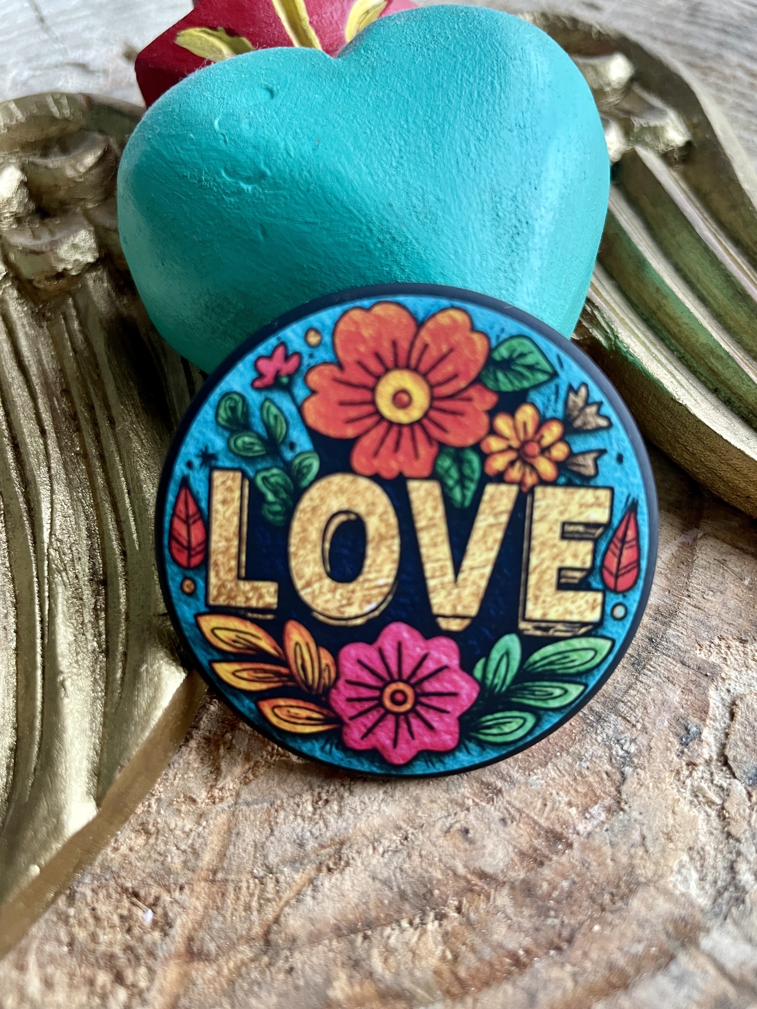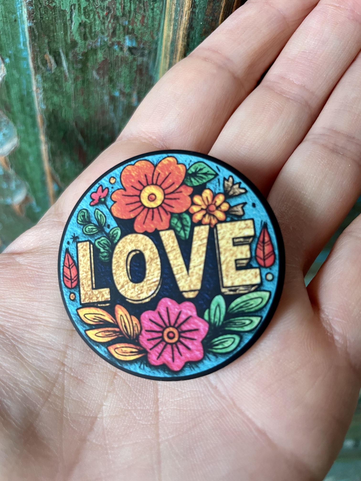 Chaque badge ou magnet est imprimé localement sur papier éco responsable finition soft touch (effet tout doux) et fabriqué avec amour. création originale & fabrication Madly Rose© L’effet doré sur le Love n’est qu’un effet plutôt réaliste 😉 Mais il ne s’agit pas de papier doré.