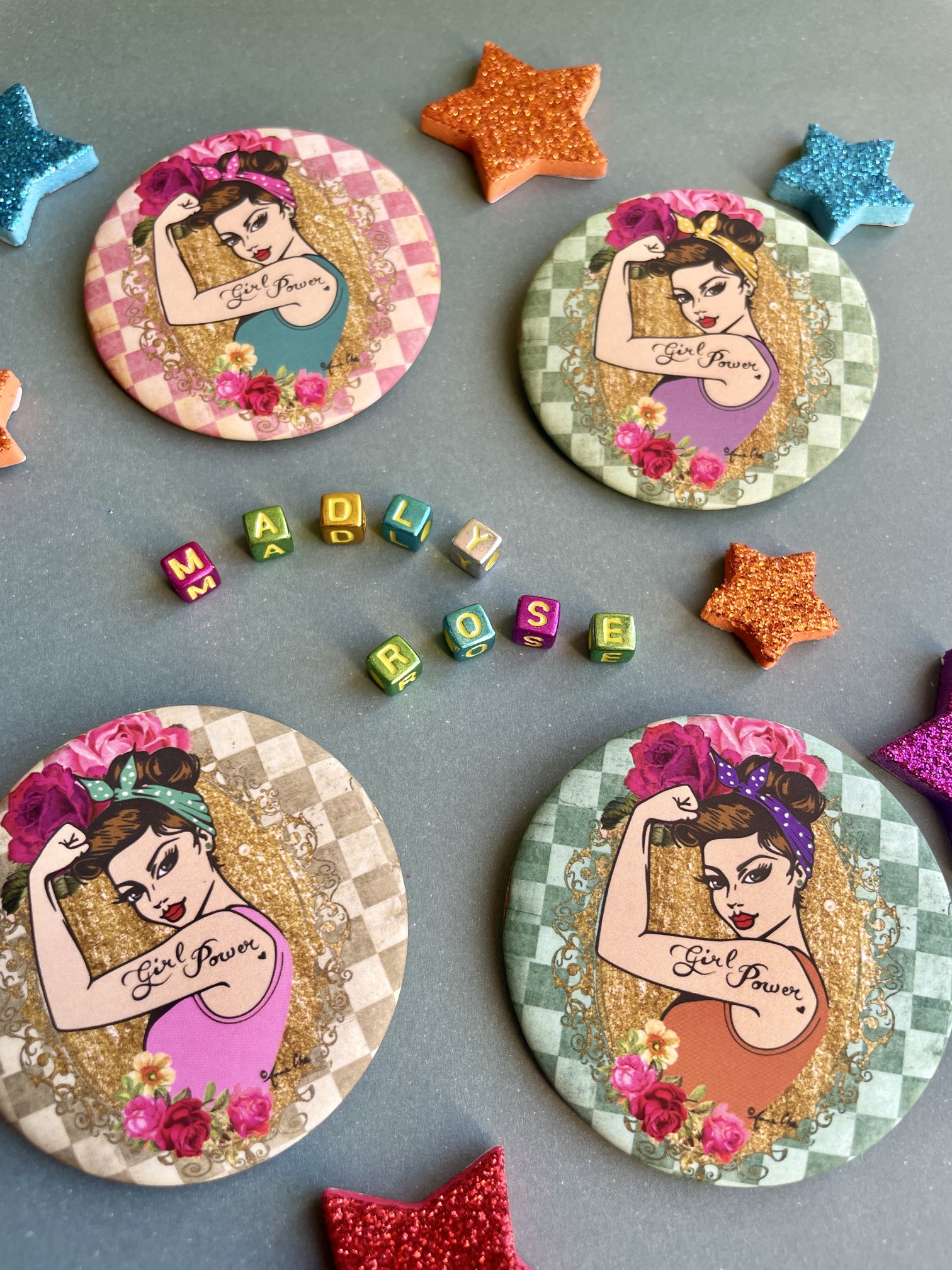 Chaque badge ou magnet est imprimé localement sur papier éco responsable finition soft touch (effet tout doux) et fabriqué avec amour. création originale & fabrication Madly Rose© / création du design d’origine de ce badge sous licence par anna cha©