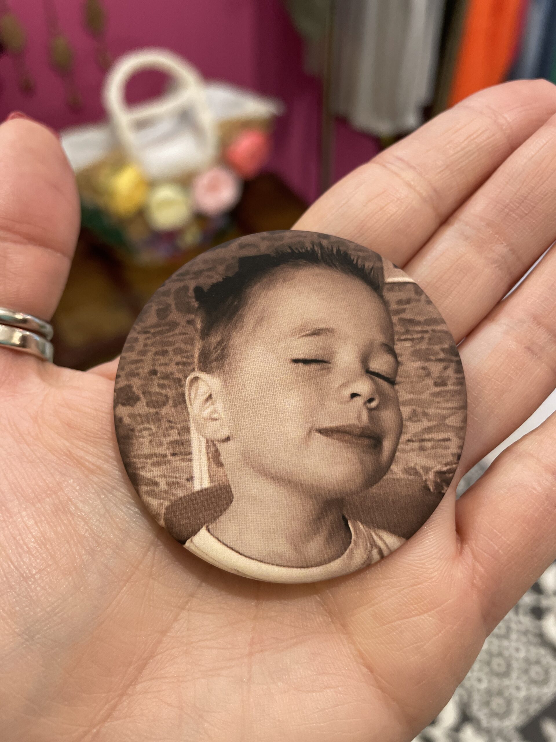 Chaque badge ou magnet est imprimé localement sur papier éco responsable finition soft touch (effet tout doux) et fabriqué par nos soins avec amour.