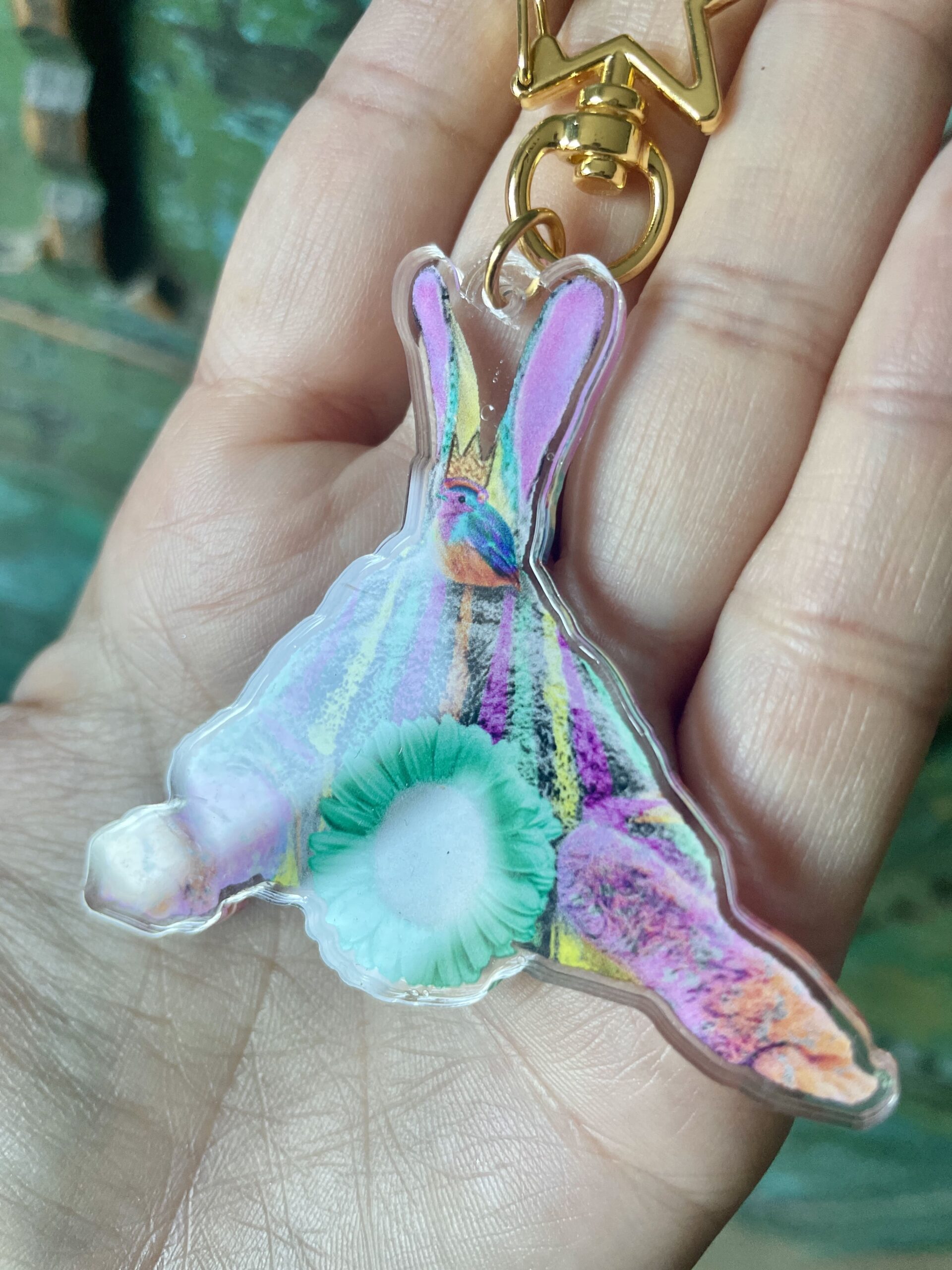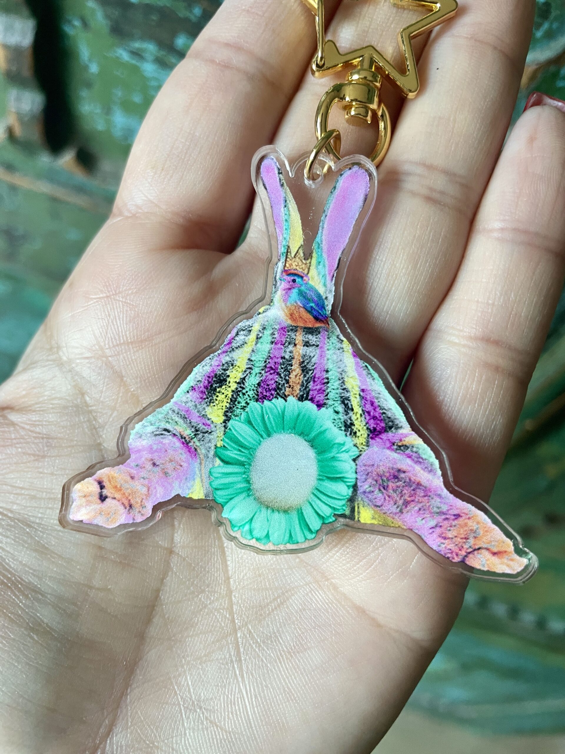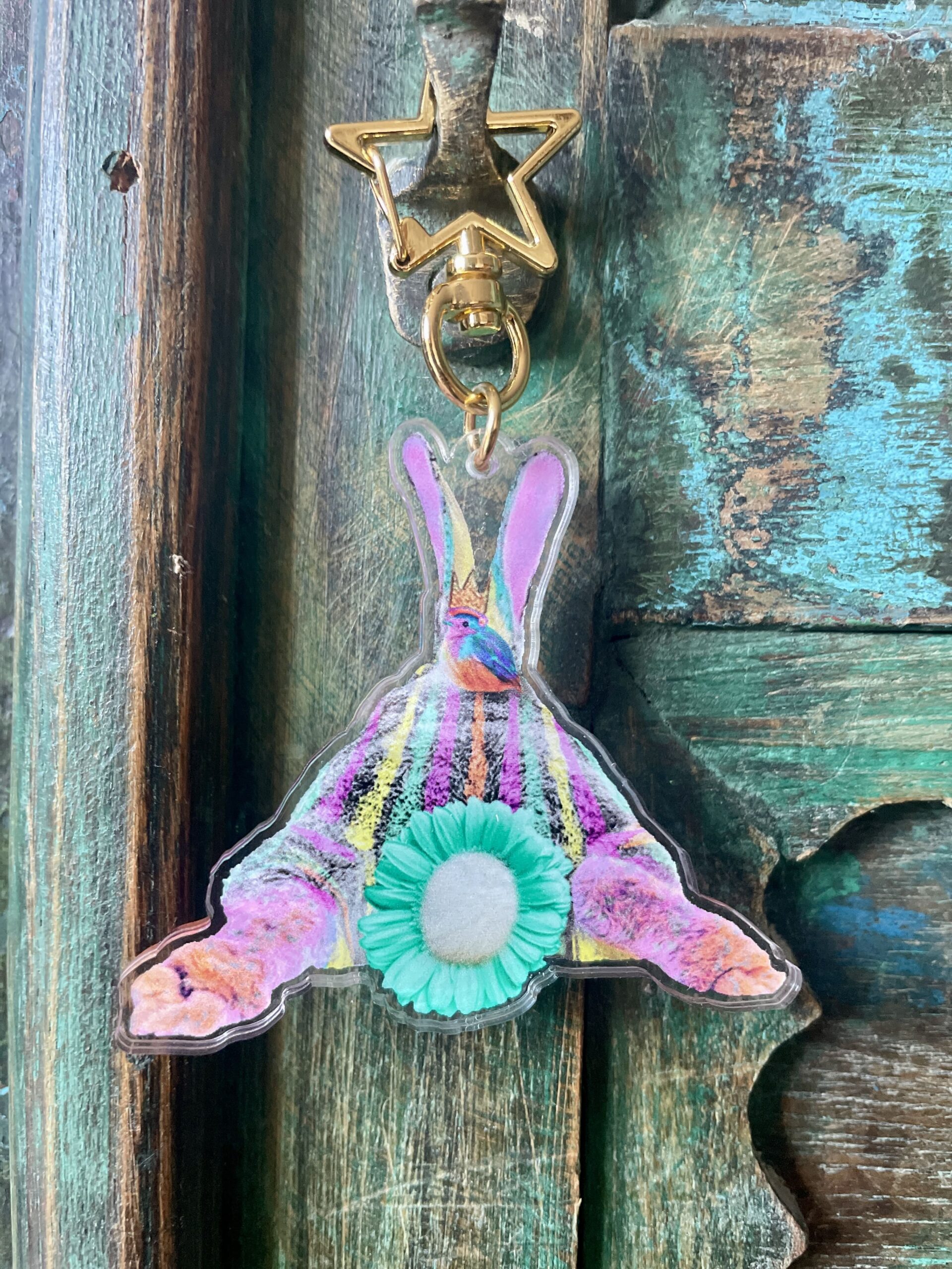 En acrylique recyclé parce que c’est meilleur pour la planète. Avec son attache en étoile dorée pour glisser vos clés.